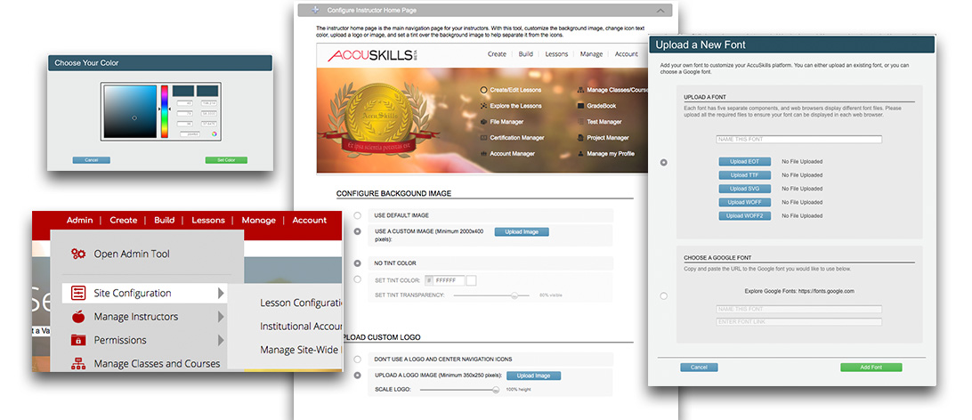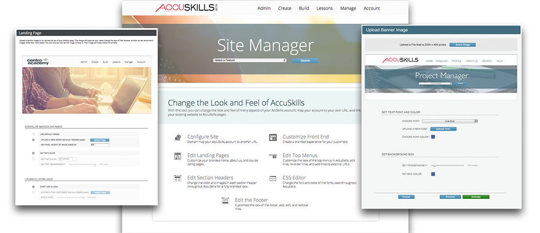 The fun site editor requires no coding and makes it easy for anyone to customize the look and feel of your AccuSkills account.